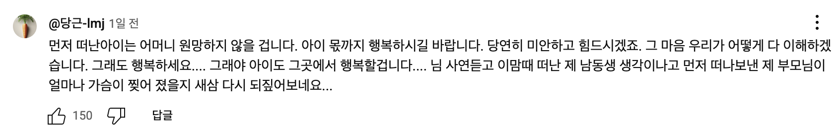 - “참가자의 목소리에서 20년 전 떠나보낸 딸의 이야기가 겹쳐졌다.”